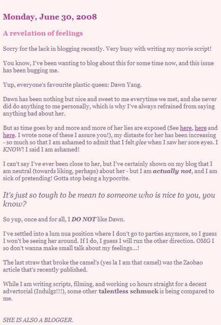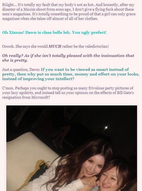 ![]() Don't pretend that you don't know me. HELLO PEOPLE! I believe everyone should know who is Xiaxue right? And also Dawn Yang. Well now, Do you know the freaking hottttttt news between them? Let me tell you, wahahahaha!
